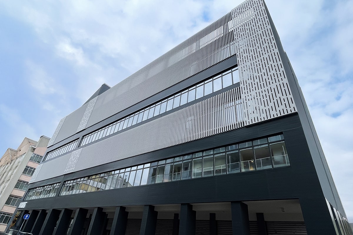Completing the architectural design, the inclusion of slotted aluminum panels introduces a graphic pattern with strong visual impact, adding dynamism to the building’s skin while also improving natural ventilation and solar shading.